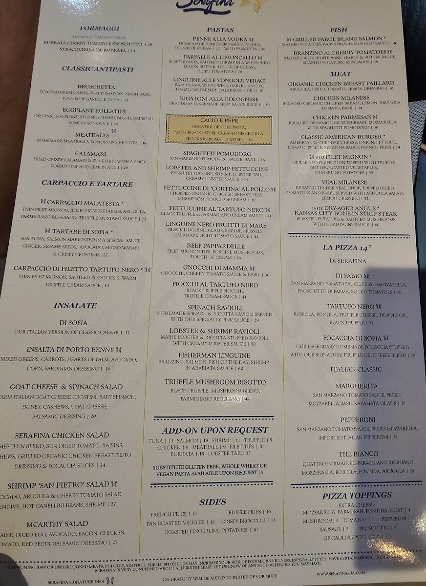 Serafina Miami Italian Restaurant, Pizza & Wine Bar in Aventura Menu (2025 Update)
